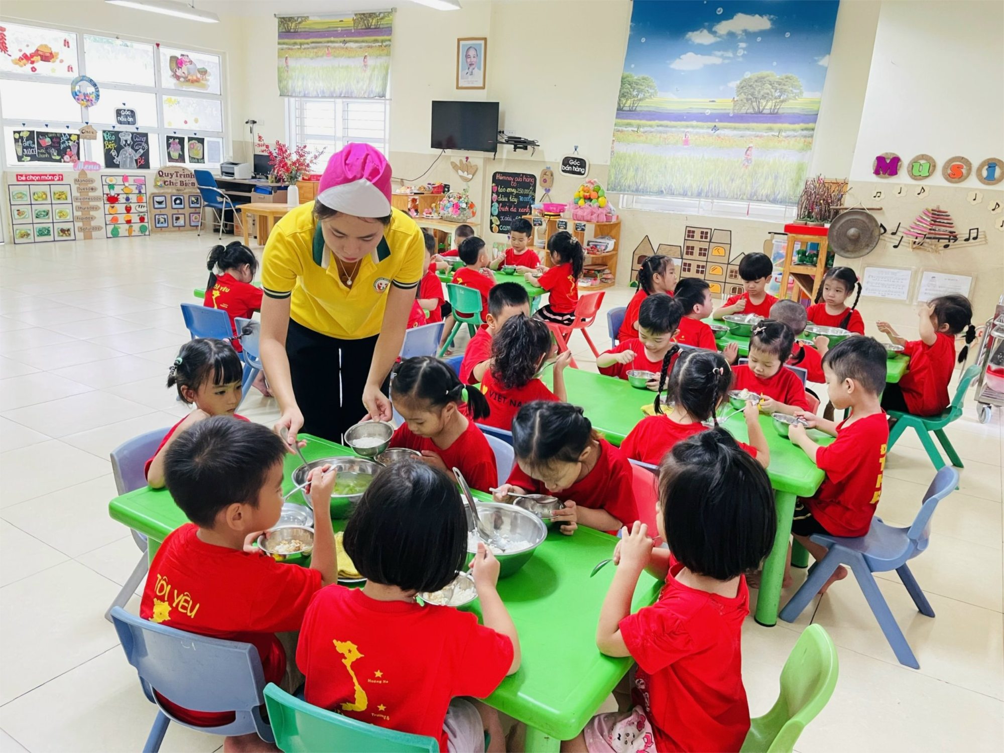 Chăm sóc nuôi dưỡng trẻ trong trường Mầm non là một nhiệm vụ quan trọng giúp trẻ có cơ thể khoẻ mạnh. Qua mỗi bữaăn trưa không chỉ giúp trẻ học được cách cư xử, sắp xếp cuộc sống và đặc biệt làđược cung cấp nguồn dinh dưỡng dồi dào cho sự phát triển toàn diện cả về thể chất và trí não.