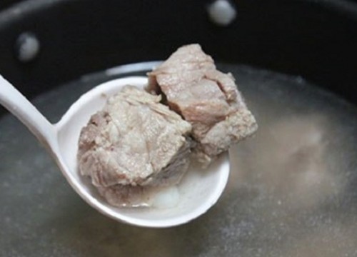 - Bước 2: Cho nước lọc vào nồi nấu sườn cho đến khi sườn chín mềm. Đồng thời, cho muối và hành củ đập dập vào nấu cùng.