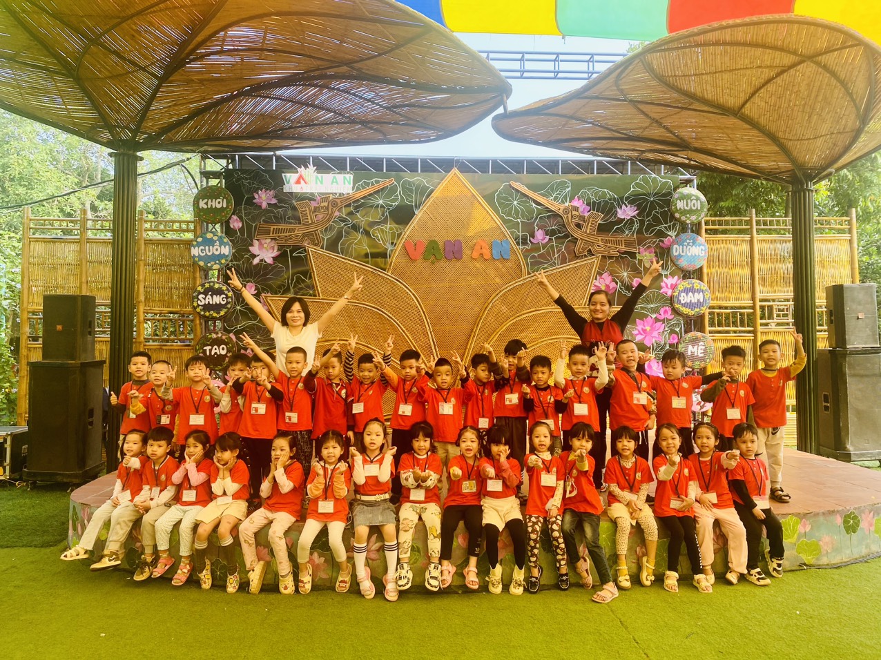 Ngay từ 7h sáng, những gương mặt rạng ngời và háo hức của các bé đã có mặt tại sân trường. 7h30 phút xe bắt đầu lăn bánh đưa các bạn nhỏ đến với " Khu trải nghiệm Vạn An". Tại đây, các bé ghé thăm Hoàng thành Thăng Long trải nghiệm cùng Trạng Tí tập trận; Hành trình cùng Trạng Tí vượt chướng ngại vật đi thi Tam Khoa " Ghi danh bảng vàng"; Cá chép vượt vũ môn: Bước qua cổng Khuê Văn Các, tham quan Trường thi Quốc Tử Giám năm nào; Thung lũng Mường Thanh: Lạc vào không gian của trận chiến Điện Biên Phủ năm nào với đồi A1, hầm Đờ Cát, đèo Pha Đin tái hiện chiến thắng trên hầm Đờ Cát; Trải nghiệm " Truy tìm cổ vật - Mảnh ghép Trống đồng": khám phá tinh hoa văn hoá Đông Sơn - biểu tượng của nền văn minh và khoa học kỳ diệu; Trải nghiệm in tranh dân gian Đông Hồ; Tham gia Lễ hội dân gian đồng bằng Bắc Bộ với nhiều trò chơi đặc sắc: Rồng rắn lên mây, nhảy bao bố.... Khám phá Sắc màu vùng cao chiêm ngưỡng nét văn hoá độc đáo của dân tộc người Mông, Dao, Tày, Nùng vùng Tây Bắc; Trải nghiệm các trò chơi