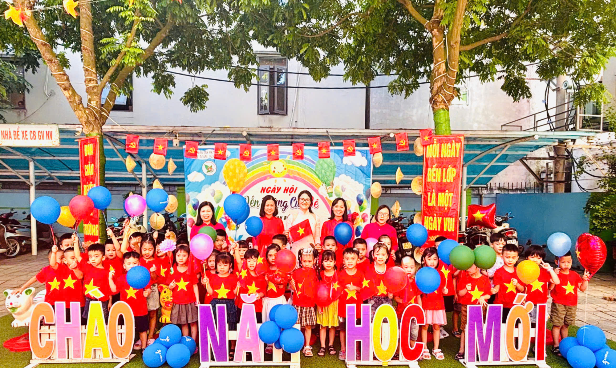 Ngay từ sớm, khuôn viên nhà trường đã được trang hoàng lộng lẫy với cờ hoa, bóng bay rực rỡ. Những khuôn mặt ngây thơ, ánh mắt háo hức của các bé hòa cùng nụ cười rạng rỡ của các cô giáo, tạo nên một bức tranh vô cùng sống động và ấm áp. Lễ khai giảng vinh dự được đón tiếp các vị đại biểu quý giá: Đại diện công an phường Bồ Đề, Các bác Bí thư, các bác tổ trưởng các tổ dân phố trên địa bàn, cùng đại diện Ban chấp hành Hội cha mẹ học sinh nhà trường và các lớp. Sự hiện diện của các vị khách quý là nguồn động viên to lớn, thể hiện sự quan tâm sâu sắc của các cấp chính quyền và cộng đồng tới sự nghiệp giáo dục.
