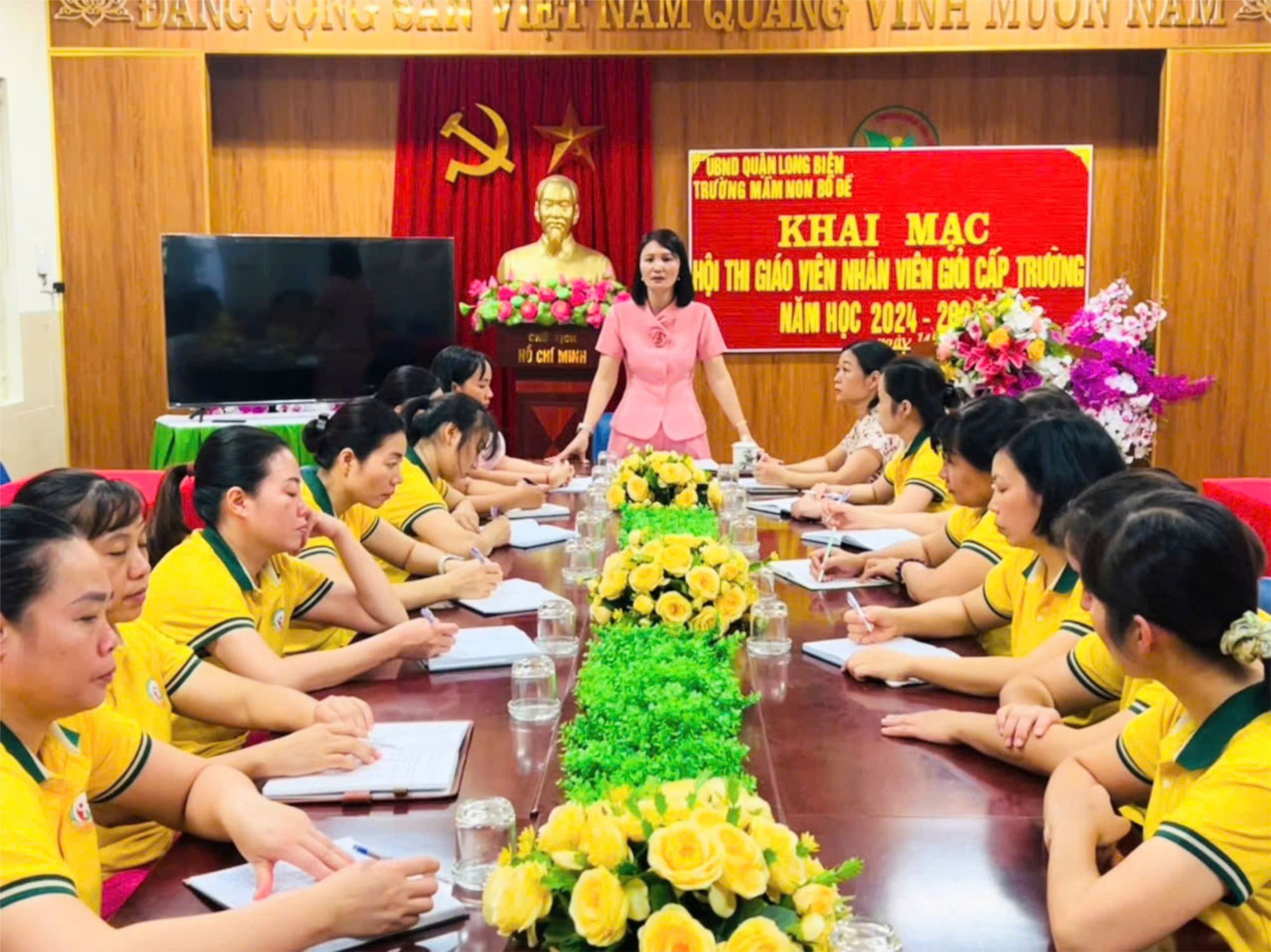 Thực hiện kế hoạch nhiệm vụ năm học 2024-2025, Nhằm phát hiện, công nhận, tôn vinh giáo viên đạt danh hiệu giáo viên dạy giỏi cấp trường và nhân rộng những điển hình tiên tiến. Góp phần nâng cao hiệu quả sinh hoạt chuyên môn và đẩy mạnh các phong trào thi đua dạy và học trong nhà trường; khuyến khích, động viên, tạo cơ hội cho giáo viên rèn luyện, tự học, sáng tạo, học hỏi, trao đổi, truyền đạt, phổ biến kinh nghiệm trong công tác chăm sóc, nuôi dưỡng, giáo dục trẻ; Sáng 14/10/2024 trường mầm non Bồ Đề tổ chức khai mạc Hội thi giáo viên nhân viên giỏi cấp trường năm học 2024 - 2025.