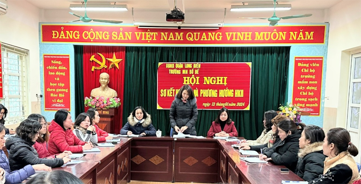 Thứ 6 ngày 12 tháng 01 năm 2024, trường mầm non Bồ Đề long trọng tổ chức Hội nghị sơ kết học kỳ I nhằm đánh giá kết quả đạt được của cô và trò trong học kỳ vừa qua và phương hướng thực hiện học kỳ II.