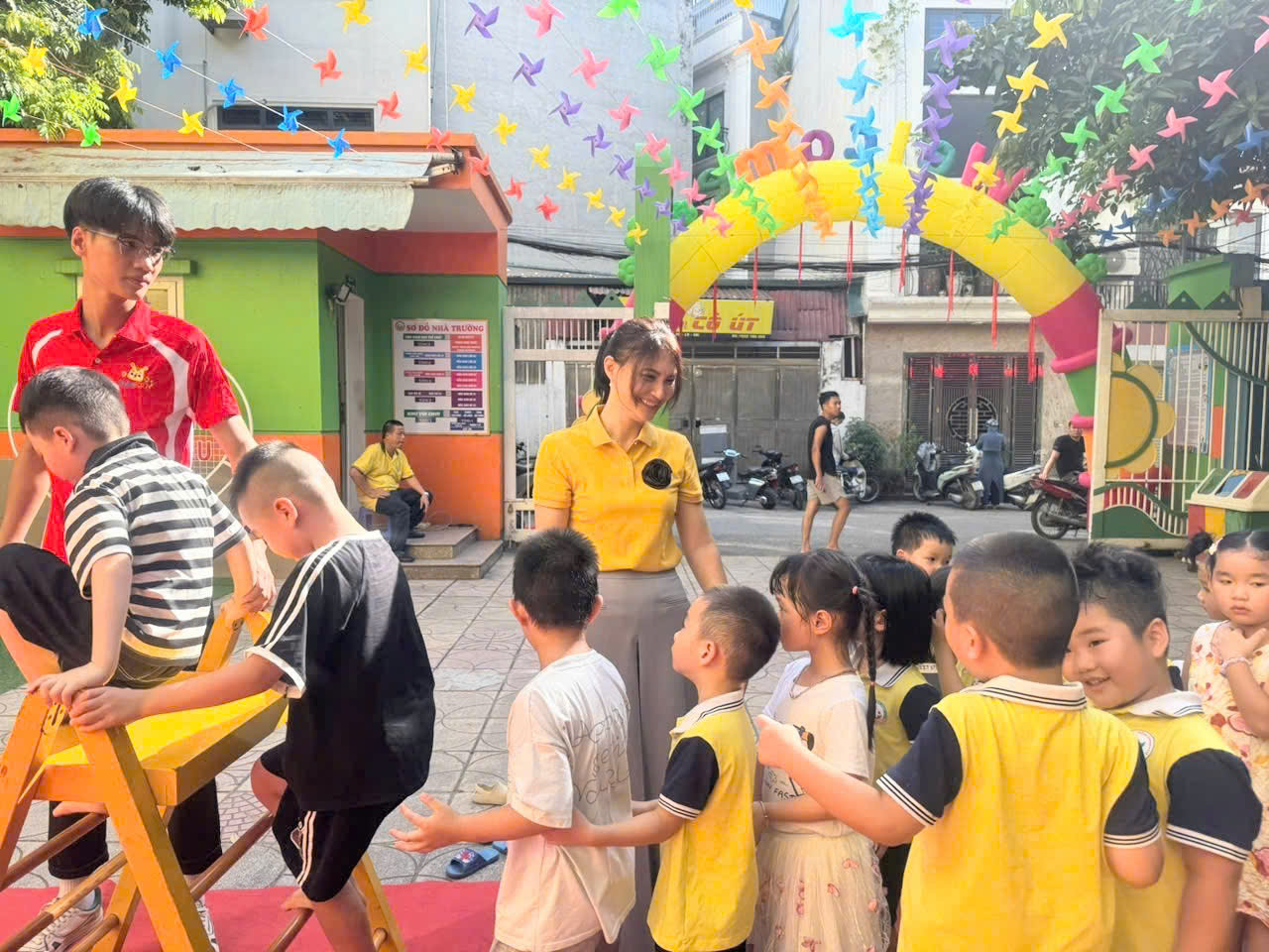 Ngay từ sáng sớm, khuôn viên trường mầm non Bồ Đề đã trở nên vô cùng sôi động với sự có mặt của đông đảo phụ huynh và các bạn nhỏ. Các bé đã được hòa mình vào những trò chơi vận động hấp dẫn, giúp rèn luyện thể chất và tinh thần đồng đội. Tiếng hò reo, cổ vũ vang vọng khắp sân trường, tạo nên một bầu không khí vô cùng náo nhiệt.