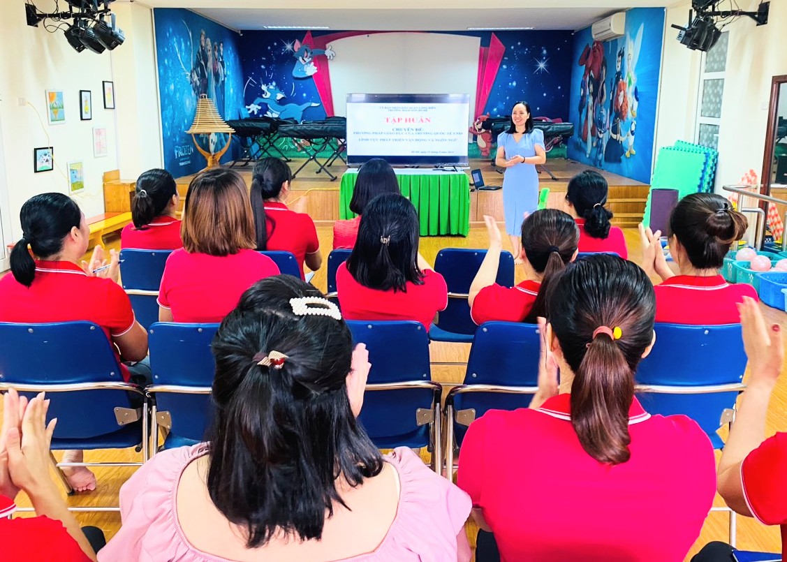 Sáng ngày 15/8/2024 trường mầm non Bồ Đề đã tổ chức tập huấn chuyên môn cho 100% giáo viên trong trường chuyên đề " Phương pháp giáo dục của trường quốc tế Unis. Lĩnh vực phát triển vận động và ngôn ngữ". Tại buổi tập huấn, các giáo viên không chỉ được nghe về các phương pháp giáo dục hiện đại hơn, cải cách hơn mà còn được cùng nhau thực hành những trò chơi vận động sáng tạo trong lĩnh vực phát triển vận động của trường quốc tế. Buổi tập huấn đã mang đến cho các cô rất nhiều bài học mới, phương pháp mới để các cô có thêm kinh nghiệm trong công tác chăm sóc giáo dục trẻ năm học sắp tới.