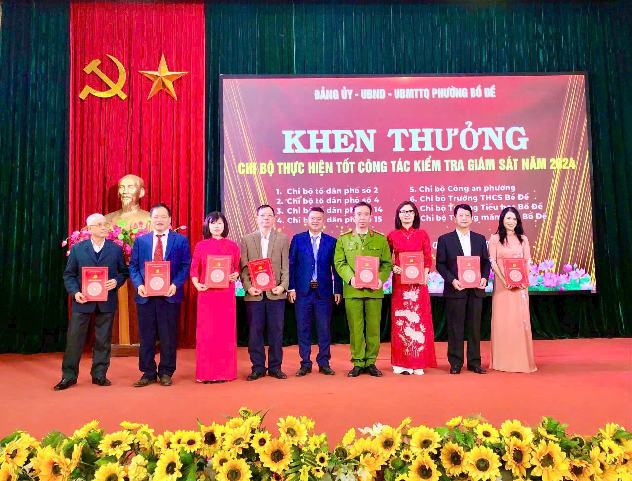 Hội nghị khen thưởng các tập thể, cá nhân có thành tích xuất sắc. Chi bộ trường mầm non Bồ Đề vinh dự được khen thưởng thực hiện tốt công tác Kiểm tra giám sát Đảng. 3 đồng chí Nguyễn Thị Thu Nga, đồng chí Lê Thị Tân, đồng chí Trương Thị Thu Huyền được khen thưởng đảng viên hoàn thành xuất sắc nhiệm vụ. Cũng trong hội nghị đồng chí Nguyễn Thị Hoàn được UBND phường khen thưởng có thành tích xuất sắc trong thực hiện chủ đề công tác năm 2024.