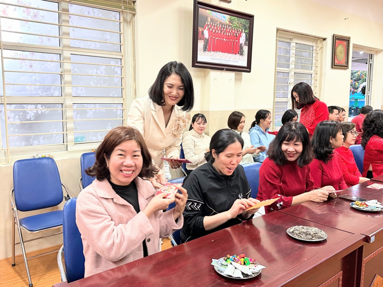 Sáng ngày 15/2/2024 ( tức mùng 6 Tết), Chính quyền và Công đoàn trường mầm non Bồ Đề đã tổ chức gặp mặt đầu Xuân cho tất cả CBGVNV trong nhà trường. Buổi gặp mặt đầu năm mới - Xuân Giáp Thìn được diễn ra trong không khí ấm cúng và vui tươi tại phòng hội đồng của trường. Tại đây, đồng chí Bí thư chi bộ - Hiệu trưởng nhà trường đã gửi lời chúc đến toàn thể CBGVNV một năm mới dồi dào sức khỏe, vạn sự như ý, thành công trong sự nghiệp; chúc cô và trò trường mầm non Bồ Đề gặt hái được nhiều thành tích trong năm học này.