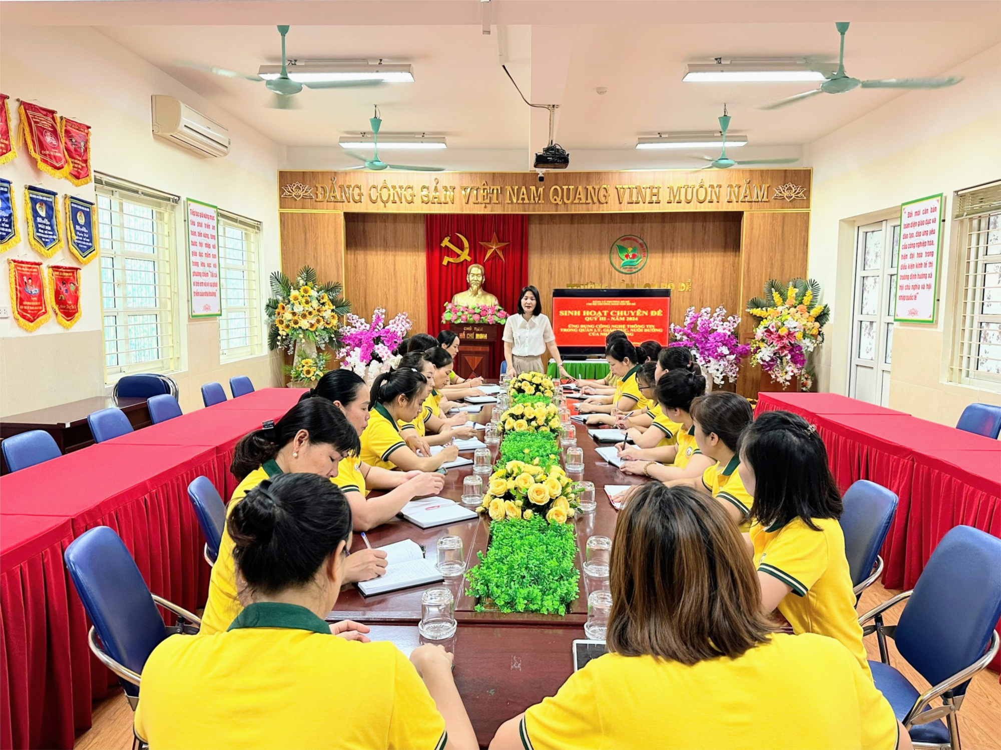 Chiều ngày 9/8/2024 Chi bộ trường mầm non Bồ Đề đã tổ chức sinh hoạt chuyên đề quý III/2024 với nội dung " Ứng dụng Công nghệ thông tin trong công tác quản lý, giáo dục và nuôi dưỡng tại nhà trường". Trong buổi sinh hoạt, nhiều đồng chí Đảng viên đã đóng góp ý kiến xây dựng và đưa ra những giải pháp hữu ích, góp phần thực hiện tốt công tác chuyển đổi số tại nhà trường và chủ đề năm của Quận Long Biên.