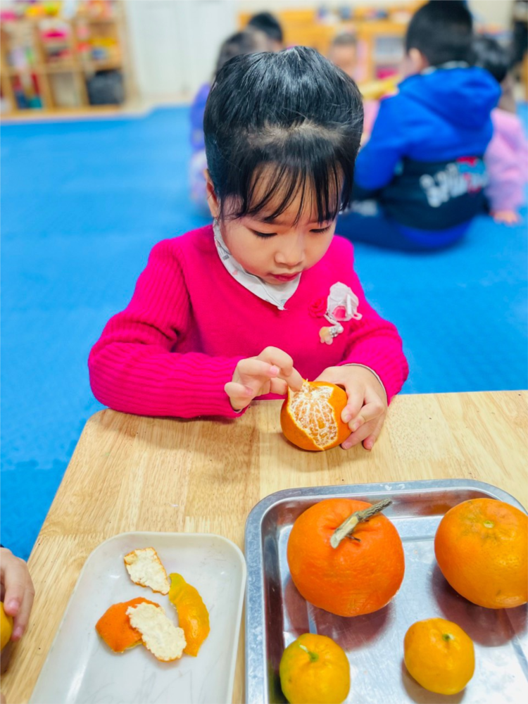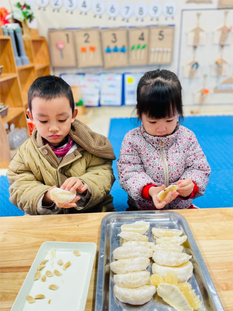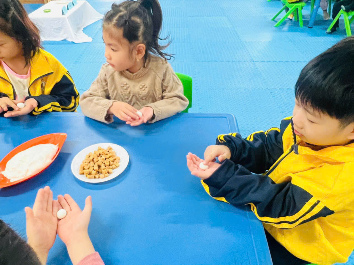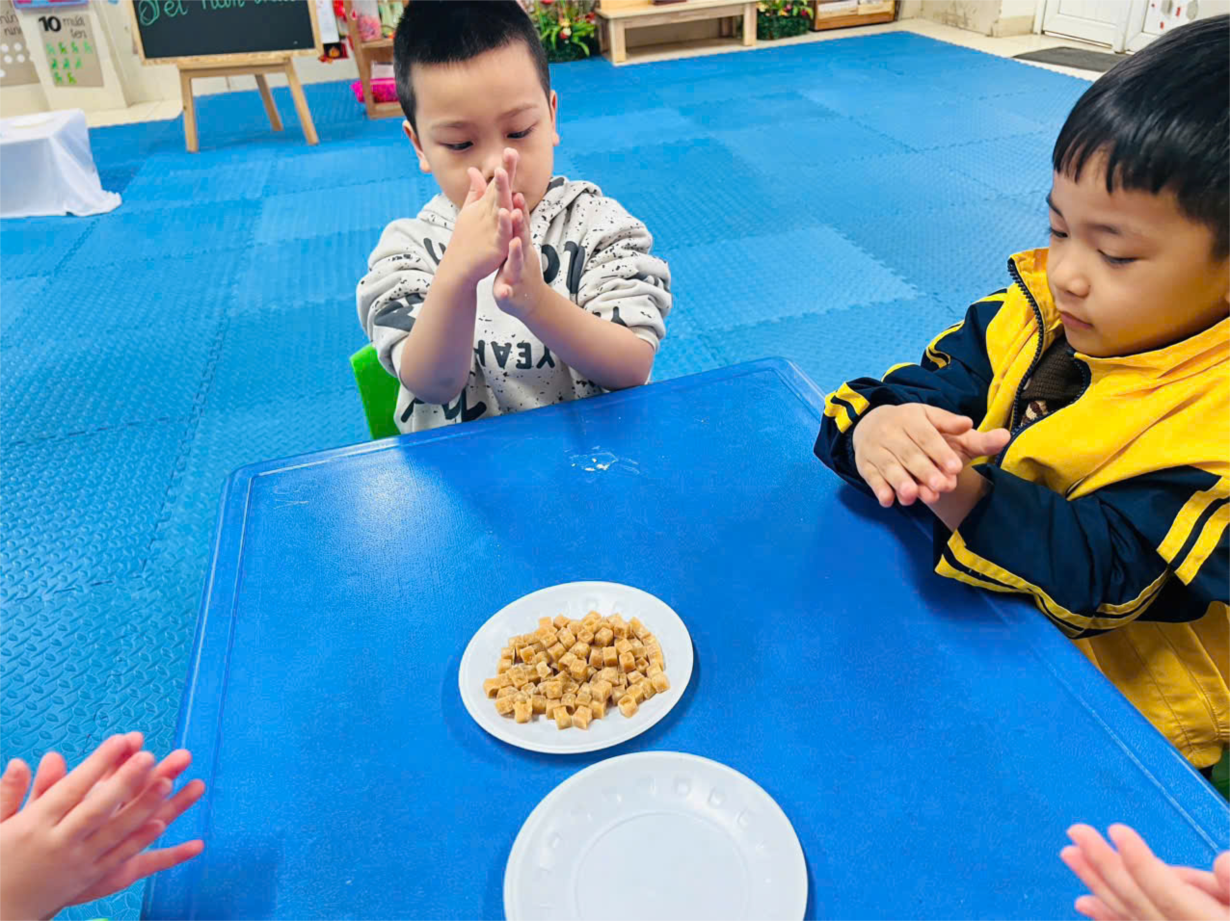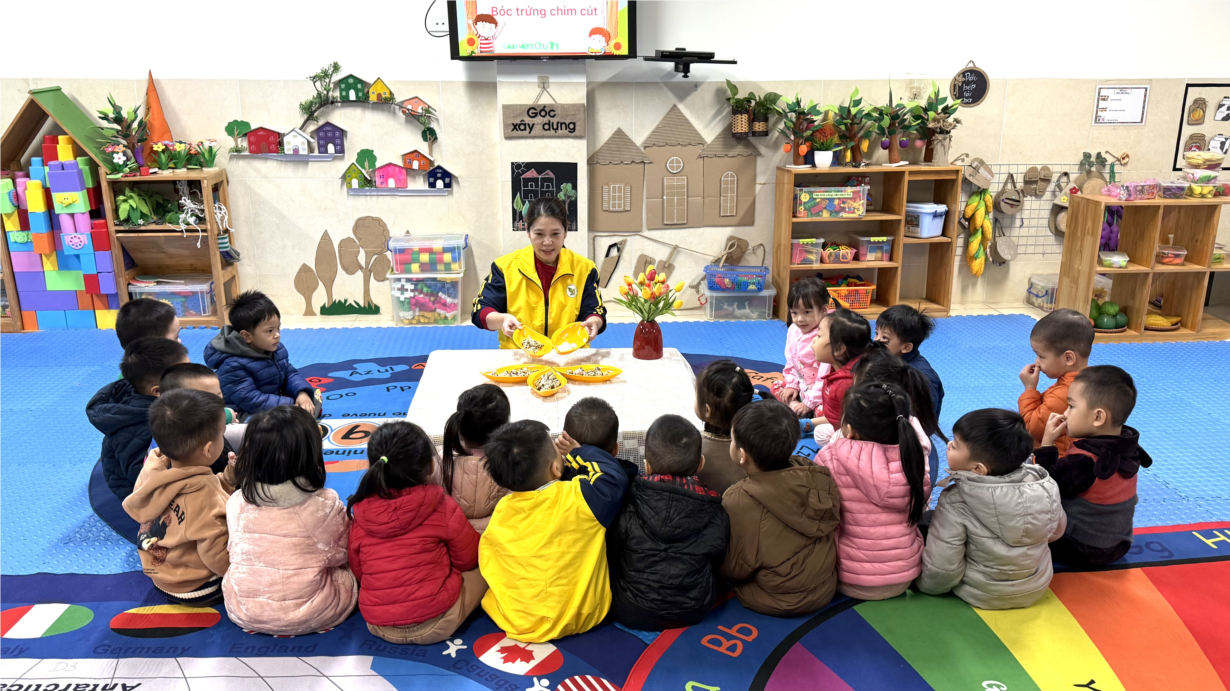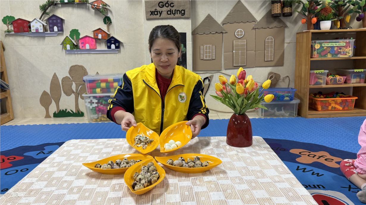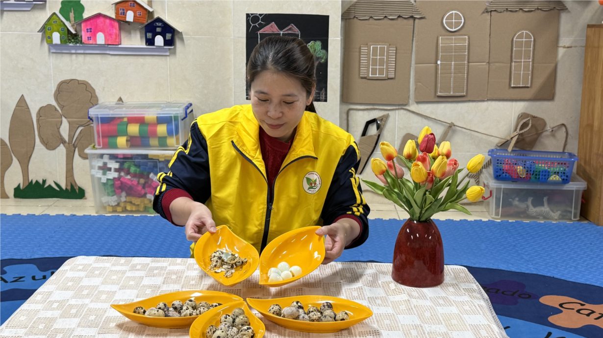 Hoạt động dạy trẻ kỹ năng bóc trứng cút lớp MGB C2