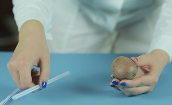 Thí !important; nghiệm ống hút chọc thủng khoai tây.
