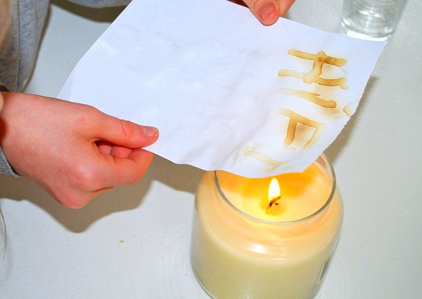 Khi hơ nó !important; trên ánh đèn điện hoặc lửa, sức nhiệt nóng sẽ làm cho dòng chữ đã viết hiện lên. Bé sẽ rất thích thú khi học được thí nghiệm này đấy.