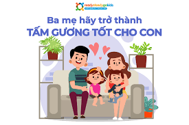 Ba mẹ hãy trở thành tấm gương tốt cho conTừ khi sinh ra, con cái đã gắn kết và gần gũi nhất với ba mẹ, nhờ có tình cảm và sự gắn bó mật thiết này mà việc con tiếp nhận kiến thức từ bố mẹ như một điều đương nhiên. Vì thế ba mẹ chính là tấm gương của các con và đóng vai trò quan trọng trong việc nuôi dạy một đứa trẻ ngoan và tự lập,