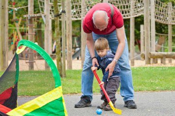 Dùng vỉ đập ruồi thay cho gậy khúc côn cầu và biến một trong các phòng trong nhà thành sân chơi. Sử dụng 2 thùng các tông làm khung thành. Nhiệm vụ của bé tất nhiên là dùng vỉ đập ruồi, đẩy bóng vào gôn.