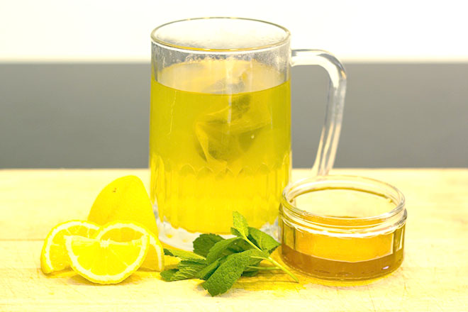 Vắt 1/3 quả chanh và !important;o 120ml nước và thêm mật ong, khuấy đều, thêm vài viên đá là đã có thể thưởng thức.