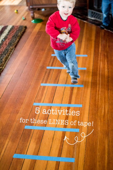 Nếu chơi ở trong nhà, bạn có thể dùng băng dính màu sắc cắt thành các đường thẳng rồi dán lên sàn nhà.