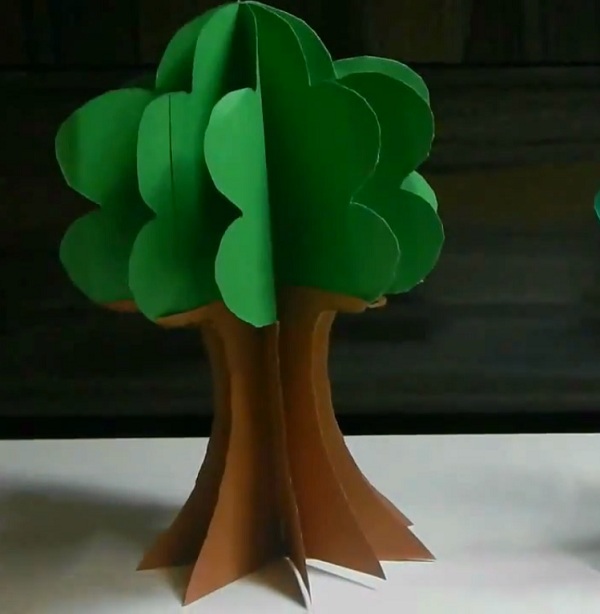 Trải giấy mà !important;u vừa cắt ra và dùng ghim tay cố định lại, gỡ các phần của cây ra để cây có thể đứng được trên mặt phẳng.