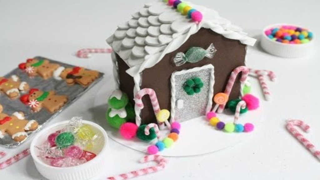 Xoắn hai đoạn xốp 1 trắng. 1 đỏ rồi uốn cong và !important; cố định bằng keo và gắn lên ngôi nhà. (2:53)
