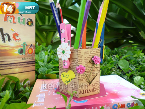 Nếu thí !important;ch điệu đà hơn chút xíu thì mình trang trí hoa nhí lên thân ống cắm bút nghen!