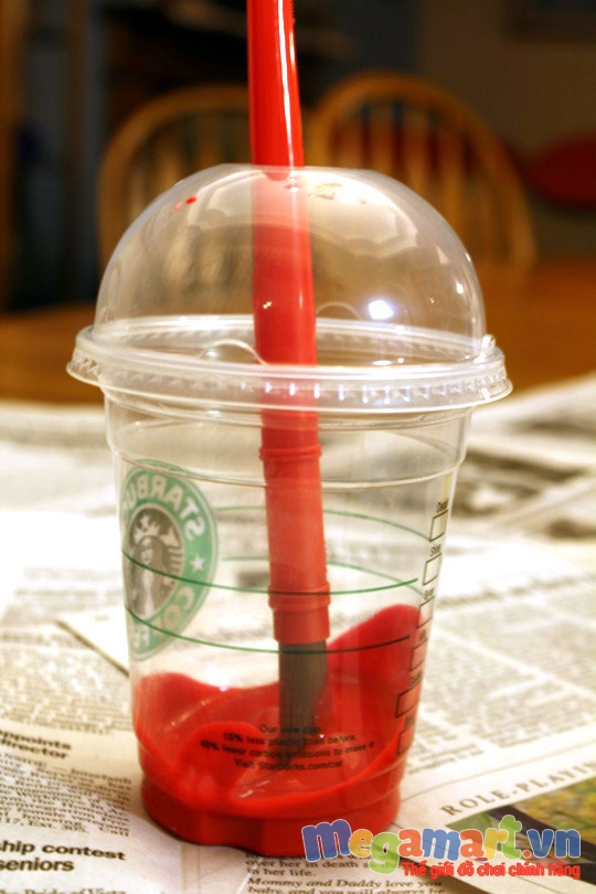 Với những chiếc cốc uống nước take away mọi người thường bỏ đi sau khi uống xong, mẹ có thể giữ lại chúng rửa sạch và làm bình giữ cọ màu cho bé khi bé tô màu. Vừa giữ được cọ mà lại tô màu dễ dàng, cách làm này thật thông minh và tiết kiệm đúng không.