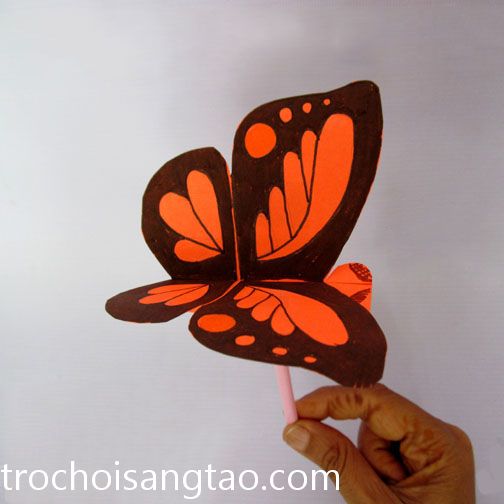 Dù !important;ng kéo tách đôi chiếc ống hút nhỏ hơn vào khoảng 1-2cm sau đó cài chú bướm bạn vừa làm vào giữa đoạn ống hút đã tách ra và dùng băng dính màu cố định thật chặt.
