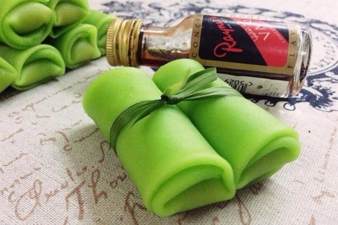 Lấy â !important;u bột ra khỏi tủ lạnh. Quấy đều. Nếu muốn làm cả vị lá dứa thì múc lấy một nửa lượng bột rồi pha thêm chiết xuất lá dứa và màu thực phẩm xanh.