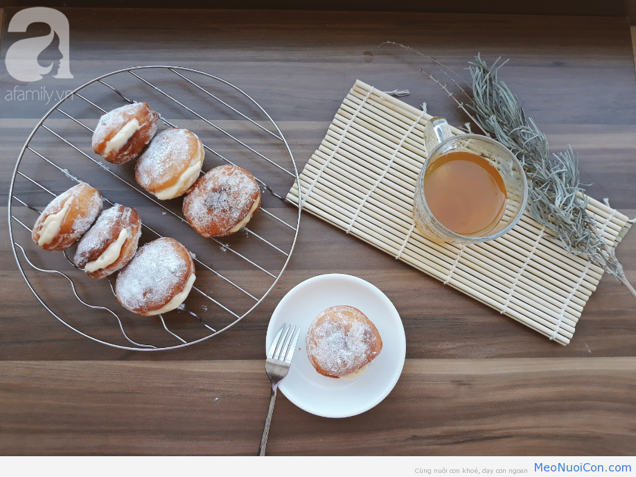 Bánh chiên xong thơm lừng mùi bơ sữa, cắn một miếng cảm nhận ngay được độ giòn rụm bên ngoài lớp vỏ, bên trong nhân kem tan chảy béo ngậy cùng độ dai vừa phải của ruột bánh, lớp đường phủ bên ngoài giúp bánh ngọt thơm hơn. Nhâm nhi cùng món bánh rán này với tách trà nóng giữa thời tiết giá lạnh của mùa đông cảm giác thật tuyệt vời biết bao!