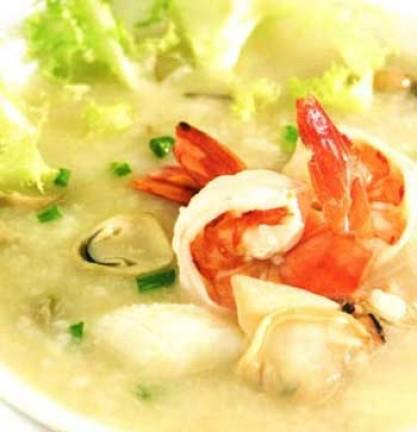 - Cho gạo và !important;o nồi hầm nhừ. Tôm bóc vỏ, chừa đuôi, khứa lưng, rút chỉ. Nghêu luộc lấy thịt. Nấm rơm rửa sạch, cắt bỏ chân, luộc sơ. Phi thơm tỏi, cho nấm, nghêu và tôm vào xào. Nêm hạt nêm, muối, đường vừa ăn rồi trút vào cháo, bắc xuống.