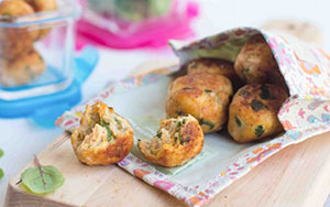 Bước 3: Làm nóng chảo lớn trên lửa vừa, thêm một chút dầu và cho từng viên gà vào trong chảo, lật đều tay đến khi bánh có màu vàng nâu là đã chín. Ngoài ra nếu nhà bạn có sẵn lò nướng bạn có thể cho vào nướng bằng cách xếp bánh vào khay nước, dùng chổi quết nhẹ lớp dầu oliu mỏng lên trên bánh. Nướng bánh ở nhiệt độ 180 độ C trong khoảng 12-15 phút là bánh chín.