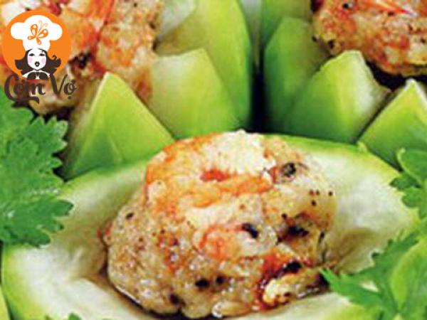 - Đặt từng viê !important;n tôm vào từng chính giữa miếng bầu. Đặt những miếng bầu vào xửng hấp. Đậy nắp nồi lại