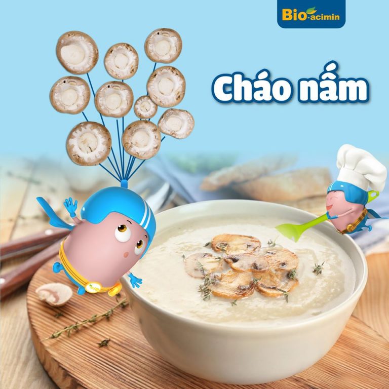 Nguyê !important;n liệu: Bột gạo hoặc gạo tẻ (35g), Nấm tươi (30g), Gia vị, Dầu ăn dinh dưỡng cho bé