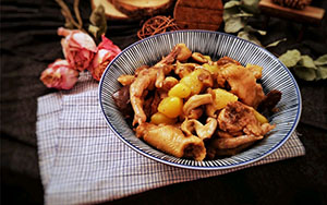 Bước 2: Lấy một chảo lớn, làm nóng chảo với dầu cho gừng tỏi vào phi thơm sau đó cho thịt gà vào xào săn thịt lại, điều chỉnh lửa vừa. Sau đó cho khoai tây, nấm và nước tương, nước lọc vào đun trên lửa vừa khoảng 30 -45 phút để thịt gà và khoai tây chín mềm.