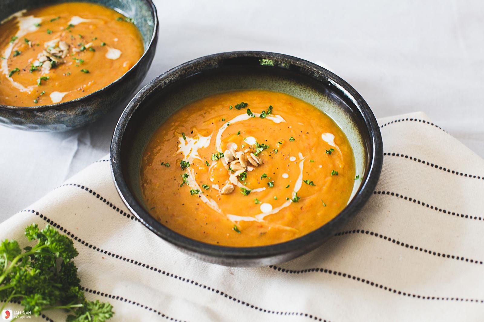 Mẹ có thể chọn khoai lang để chế biến nên món súp khoai lang thơm ngon cho bé. Khoai lang là thực phẩm tốt cho sức khỏe, đặc biệt là cho hệ đường ruột, hệ tiêu hoá của trẻ. Trẻ ăn khoai lang ngăn ngừa được tình trạng táo bón, tiêu chảy khá hiệu quả. Đây cũng là món ăn giúp bổ sung lượng dinh dưỡng ngăn chặn sự xâm hại của vi khuẩn khá tốt cho bé. Khoai tây sau chế biến cắt nhỏ rồi xào chín xơ với hành tây cho thơm. Sau đó mẹ cho thêm nước dùng vào nấu cho chín mềm. Nếu cần xay nhuyễn thì mẹ xay nhuyễn rồi nêm gia vị cho vừa ăn là hoàn thành.