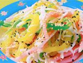 Cho bột gạo, bột năng, vani vào thố, đổ nước sôi vào, khuấy đều. Nhồi mịn hỗn hợp bột, chia thành ba phần, nhồi với ba màu riêng. Đun sôi nước dùng, vo từng miếng bột nhỏ thành sợi dài, thả vào nồi nước sôi luộc đến khi bột nổi, vớt ra, cho vào bát nước lạnh. Sau đó, vớt bột ra để ráo nước, trộn với dừa khi bánh còn hơi ấm. Rang vừng, giã sơ, trộn với đường.