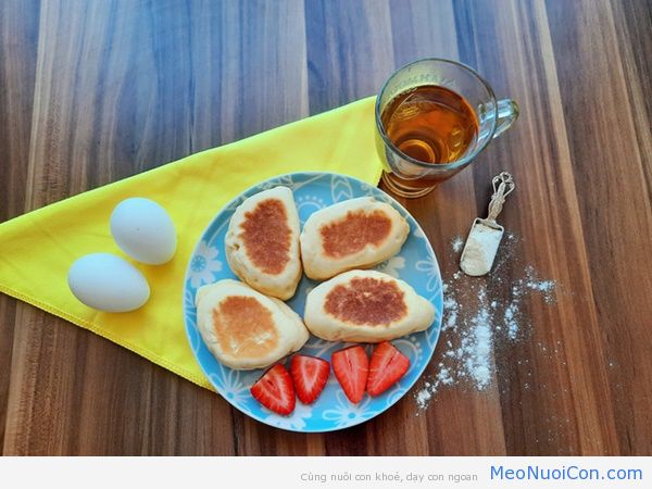 Đặt một chiếc chảo chống dính có nắp đậy lên bếp, vặn lửa nhỏ. Chảo nóng cho bánh vào, đậy nắp lại. Lật 2 mặt cho vàng đều, bánh phồng lên, sờ vào mặt bánh cảm giác ráp ráp tức là bánh đã chín.