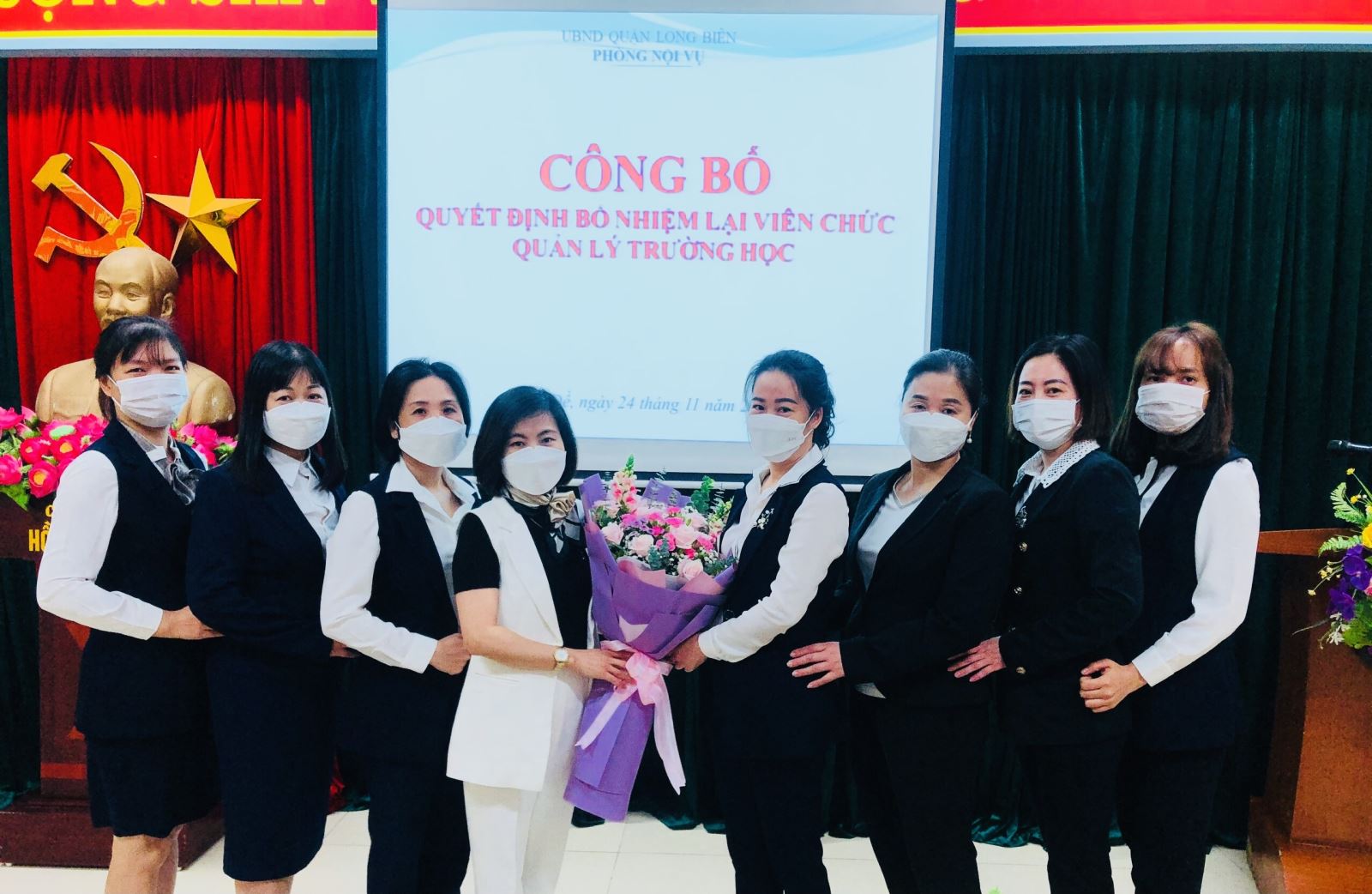 !important; Sáng ngày 24/11/2021 tại Trường Mầm non Bồ Đề, Phòng Nội vụ tổ chức Công bố, trao quyết định bổ nhiệm lại đ/c Nguyễn Thị Hường - Phó hiệu trưởng.