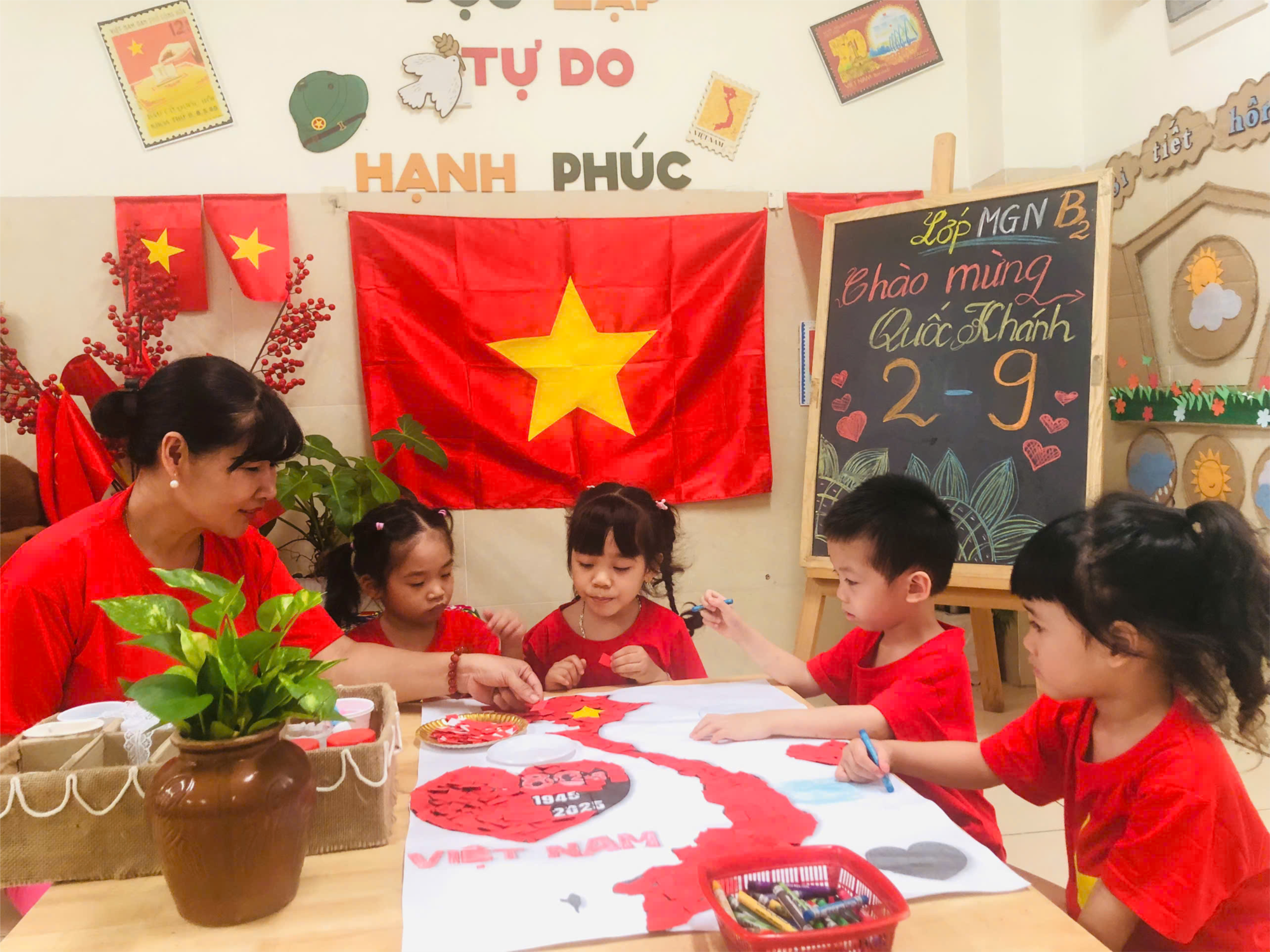 Mỗi buổi sáng khi các bé yêu còn chưa đến trường, các cô giáo của Trường mầm non Bồ Đề đã đến lớp thật sớm để chuẩn bị cho một ngày làm việc mới. Với mong muốn đem lại cho các con một môi trường học tập và vui chơi an toàn, hạnh phúc khi ở lớp, mỗi buổi sáng các cô sẽ mở cửa thông thoáng lớp học, lau dọn vệ sinh trong và ngoài lớp học sạch sẽ. Trong lớp, mỗi cô giáo sẽ làm một nhiệm vụ khác nhau, cô thì chuẩn bị đồ dùng để tổ chức các hoạt động học tập và vui chơi trong ngày cho trẻ. Cô khác sẽ chuẩn bị đồ dùng phục vụ cho giờ ăn trưa của trẻ như giặt khăn lau mặt, khăn lau miệng để mang xuống tủ hấp, giặt khăn lau tay ở bàn ăn, chuẩn bị nước muối xúc miệng cho trẻ sau khi trẻ ăn xong, lau dọn sạch sẽ trong nhà vệ sinh để đảm bảo nền nhà luôn khô ráo và an toàn cho trẻ… Niềm vui và hạnh phúc của các cô là mỗi ngày được chào đón các con đến trường thật vui vẻ, khoẻ mạnh và luôn nhìn thấy những nụ cười rạng rỡ, hạnh phúc của các con. Giờ học sắp đến rồi, cô và lớp học đã sẵn sàng chào đón bé yêu, các con hãy đến trường mầm non Bồ Đề học tập và vui chơi cùng cô và các bạn nhé.