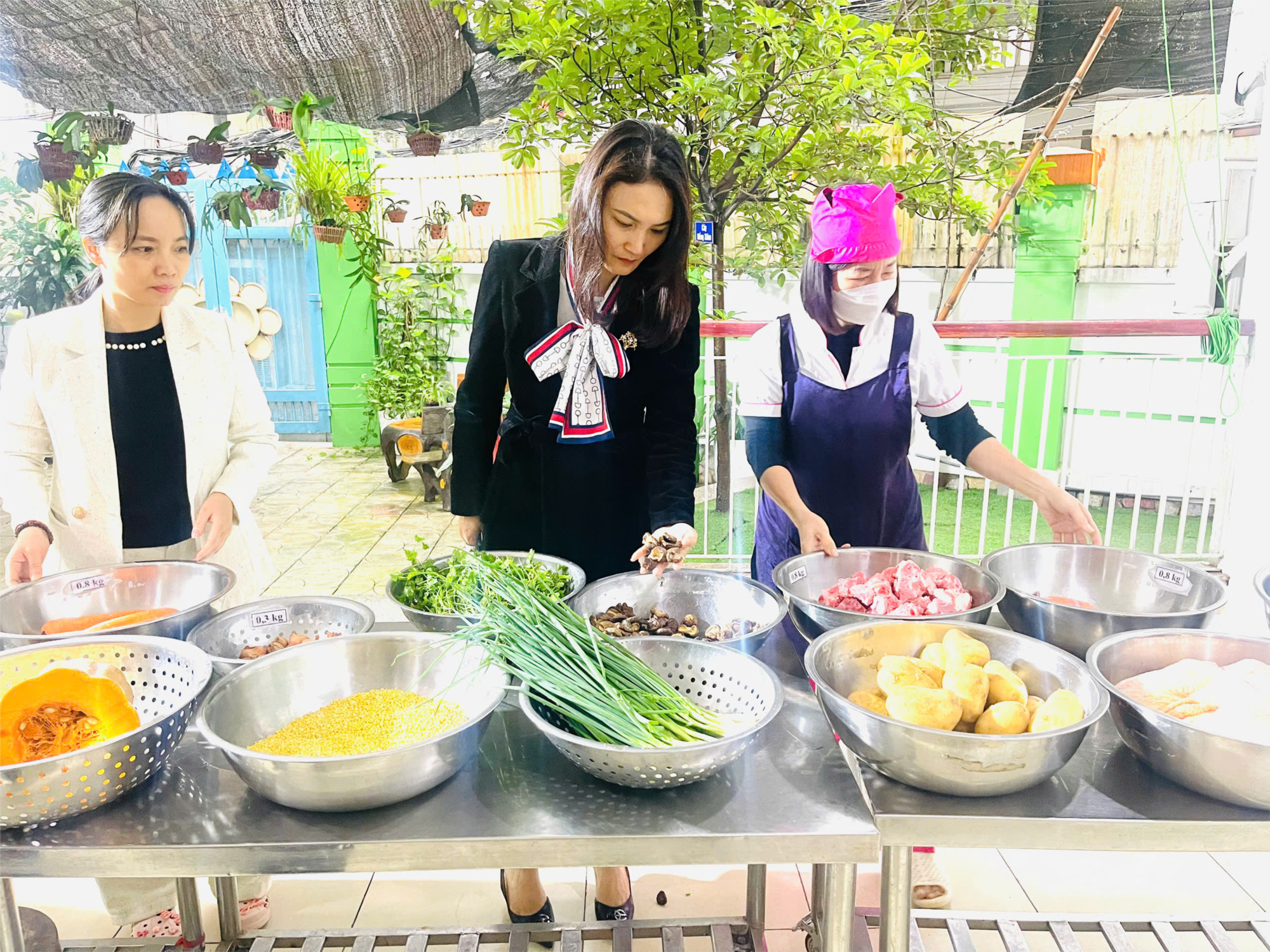 ✨ Qua kiểm tra, đồng chí Hiệu trưởng đánh giá bếp ăn duy trì nền nếp tốt, khu vực chế biến và dụng cụ đảm bảo vệ sinh; thực phẩm được giao nhận đầy đủ hồ sơ, đúng quy định; công tác lưu mẫu thực hiện đúng quy trình.