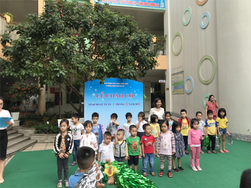 Chào cờ đầu tuần là nghi thức có một ý nghĩa quan trọng, là giờ phút ôn lại truyền thống hào hùng của dân tộc, khơi gợi nên những niềm tự hào dân tộc đối với học sinh Việt Nam. Nhận thức được sự thiêng liêng ấy, ngay từ đầu năm học 2018 – 2019, Nhà trường sẽ tổ chức nghi thức chào cờ -sinh hoạt đầu tuần vào mỗi sáng thứ 2. Đây là hoạt động cần thiết nhằm giáo dục lòng yêu nước và ý thức thi đua học tập, rèn luyện cho các bé