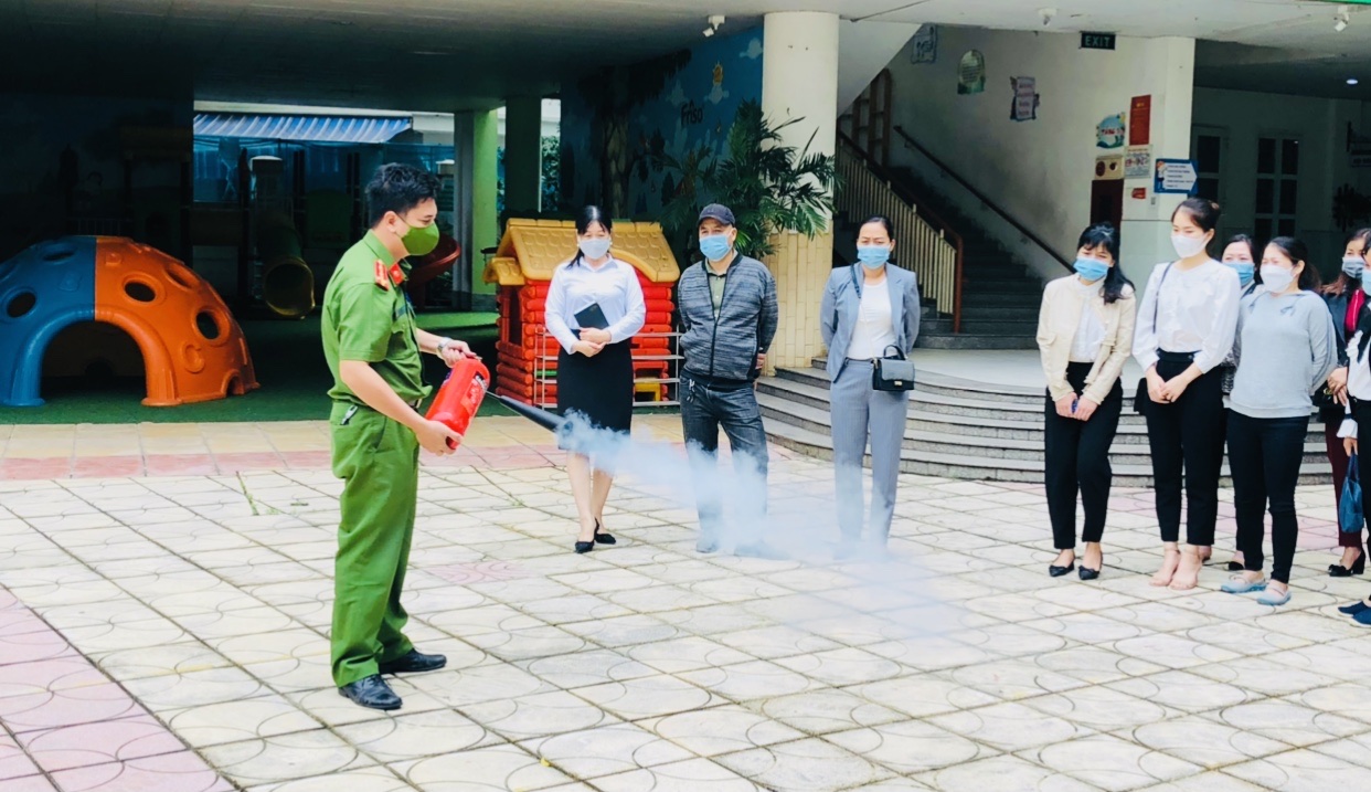 Tại buổi tập huấn cán bộ, giáo viên, nhân viên trong nhà trường được nghe Đại úy Hoàng Văn Hải - Cán bộ Đội Phòng Cảnh sát PCCC quận Long Biên truyền đạt những kiến thức cơ bản, các văn bản pháp luật về PCCC, các nguyên nhân gây ra cháy nổ, các vụ cháy, nổ tại trường học; tính chất nguy hiểm của đám cháy; một số nguyên nhân có thể gây cháy tại trường học... Cách sử dụng các phương tiện chữa cháy và thực hành dập lửa bằng bình chữa cháy xách tay và một số kỹ năng thoát nạn an toàn trong đám cháy.