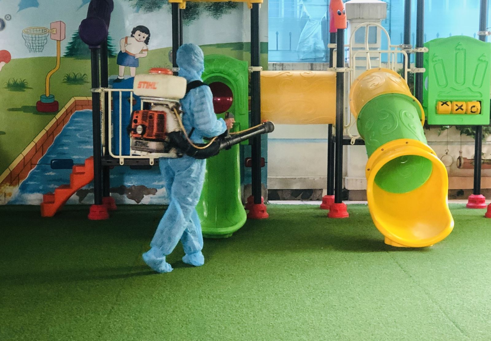 Hình ảnh phun thuốc các phòng học, nhà vệ sinh