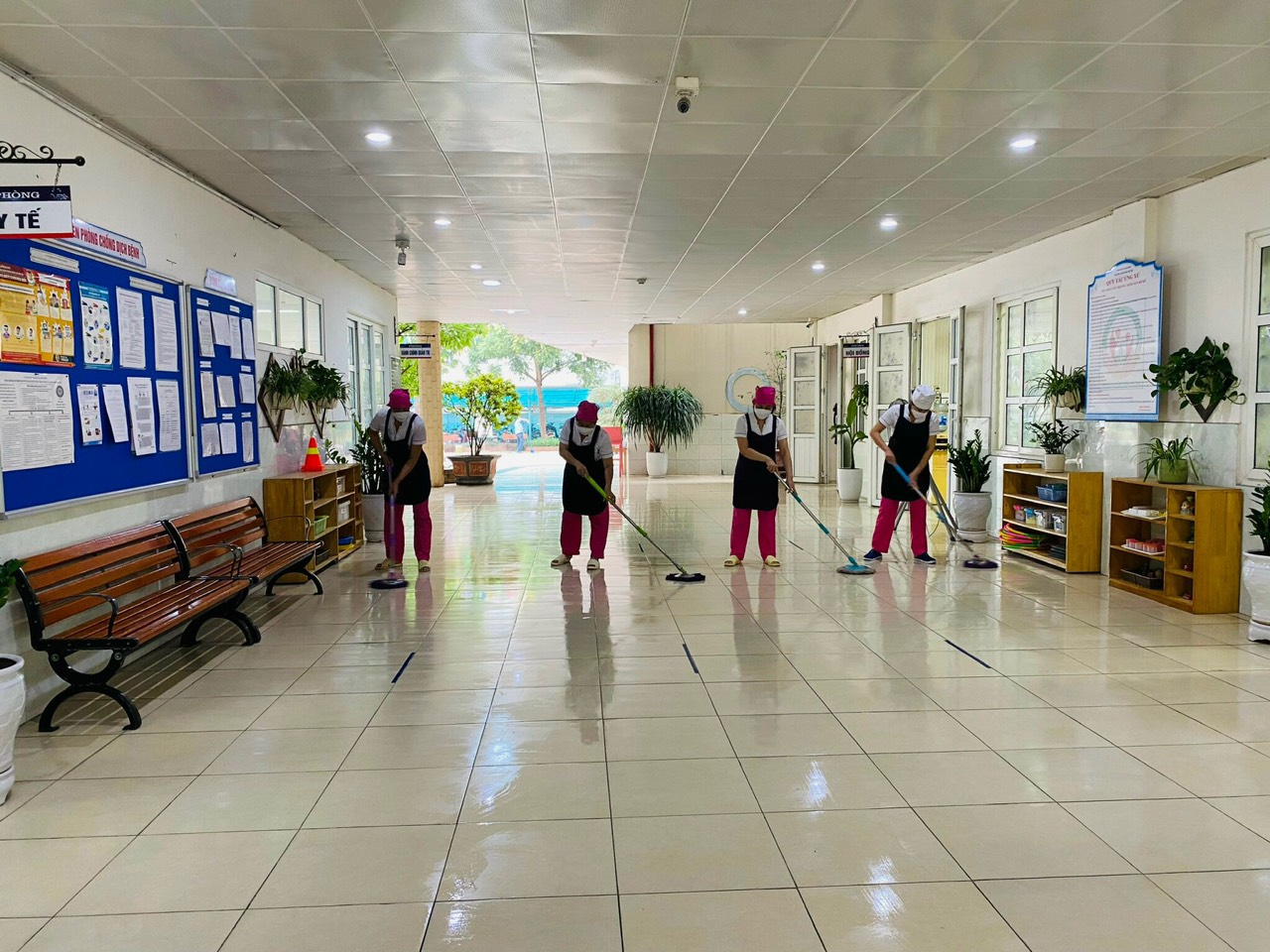 Hì !important;nh ảnh CBGVNV vệ sinh sắp xếp lại cây cối khu vực cổng sau.