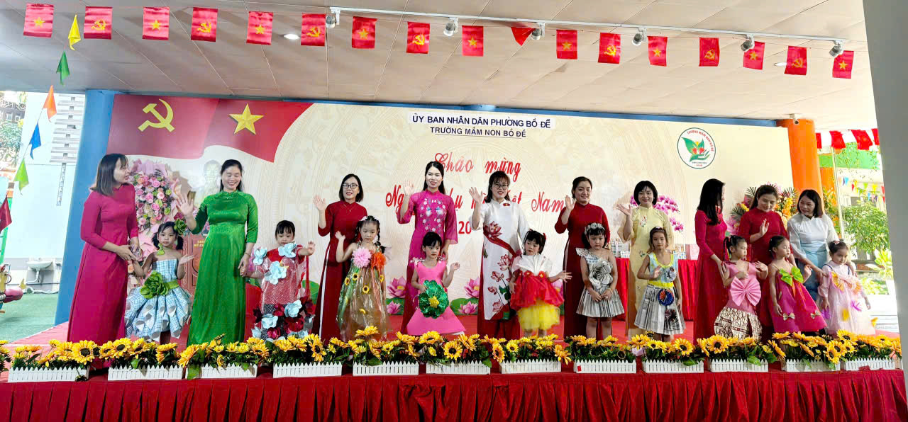 Để nâng cao ý thức bảo vệ môi trường, từ những nguyên liệu không dùng đến như giấy báo cũ, túi nilon, giấy gói quà, chai lọ nhựa…. qua đôi bàn tay khéo léo của các cô giáo trường mầm non Bồ Đề, đã thiết kế rất nhiều bộ trang phục tái chế vừa đẹp, đáng yêu nhưng không kém phần độc lạ. Các bé đã khoác trên mình những bộ trang phục do các cô thiết kế và tự tin sải bước trên sân khấu. Đồng hành cùng các bé là các cô giáo rất trẻ trung năng động, trình diễn trong bộ trang phục áo dài truyền thống làm tôn lên vẻ đẹp của người phụ nữ Việt Nam.