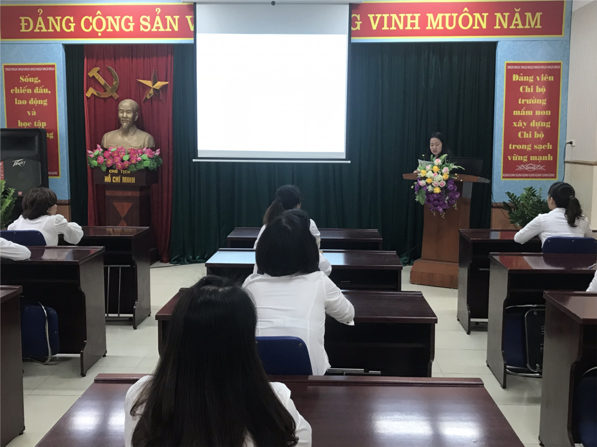 Trong buổi khai mạc đ/c Nguyễn Thị Hường – Phó bí thư chi bộ - Phó hiệu trưởng nhà trường đã phát biểu khai mạc Hội thi, đồng chí nhấn mạnh: Hội thi góp phần đẩy mạnh các phong trào thi đua trong trường học, khuyến khích động viên, tạo cơ hội để giáo viên và CBQL tự học và sáng tạo: Tuyên dương, nhân rộng những điển hình tiên tiến trong hoạt động giáo dục trẻ, tạo động lực phát triển sự nghiệp giáo dục; qua đó để đánh giá thực trạng đội ngũ các nhà trường. Đồng chí đã động viên, khích lệ tinh thần, ý chí quyết tâm của CBGVNV nhà trường , gửi những lời chúc tốt đẹp tới toàn thể GVNV. Sự có mặt của đồng chí là nguồn động viên to lớn giúp các GVNV bình tĩnh tự tin hoàn thành tốt phần thi của mình.