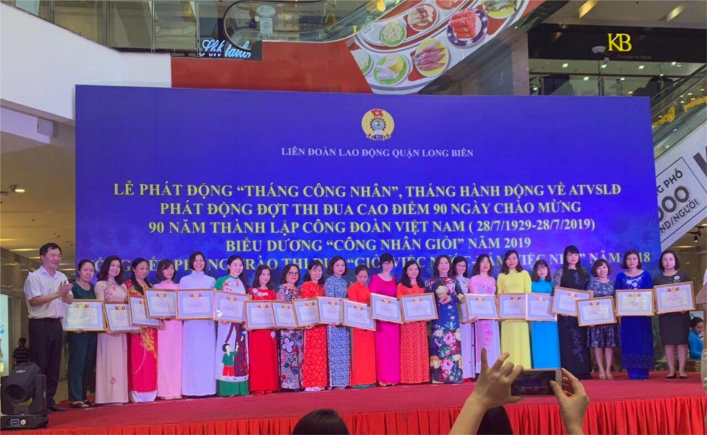 Sáng ngày 25 tháng 4 năm 2019, tại trung tâm Thương mại Savico Megamall, Ban thường vụ Liên đoàn lao động quận Long Biên tổ chức Lễ phát động “Tháng công nhân”, Tháng hành động về ATVSLĐ phát động đợt thi đua cao điểm 90 ngày chào mừng 90 năm thành lập Công đoàn Việt Nam (28/7/1929 – 28/7/2019), biểu dương “Công nhân giỏi” năm 2019 và tổng kết phong trào thi đua “Giỏi việc nước - Đảm việc nhà” năm 2018.