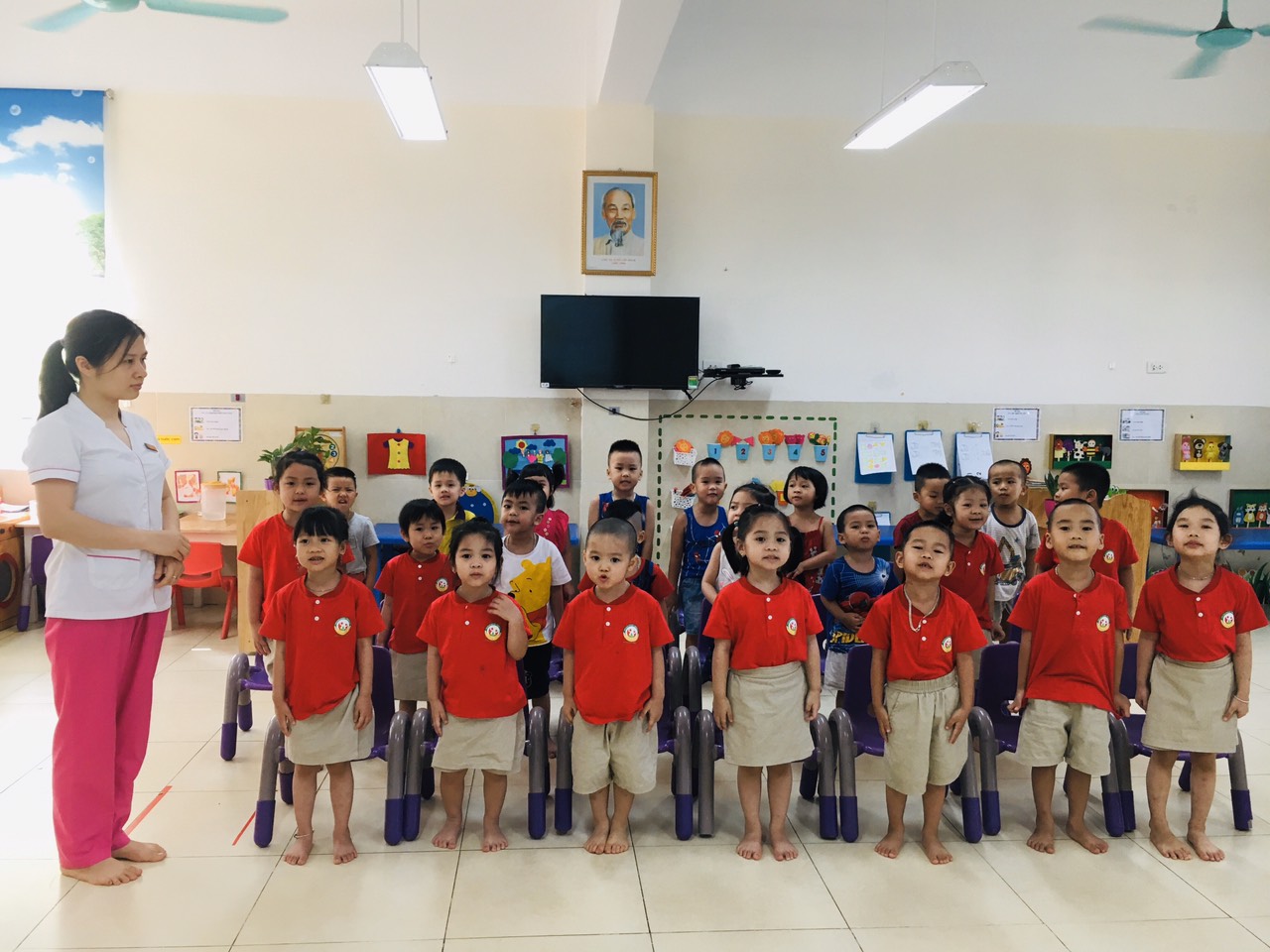 Cả lớp đang rất chăm chú !important; nghe cô Chiến đọc bài thơ "Cây dây leo"