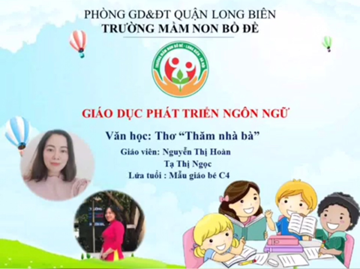 Xin chà !important;o tất cả các bạn nhỏ trường mầm non Bồ Đề, vậy là một tuần nữa đã qua đi vì dịch bệnh mà tất cả cô trò chúng ta không được đến trường học nhưng hàng tuần cô và tất cả các con vẫn gặp nhau qua những bài học video cô gửi phải không nào. Và tuần này cô sẽ gửi đến các con một bài thơ "Thăm nhà bà" các con nhớ nhắc bố mẹ mở cho mình học nhé.