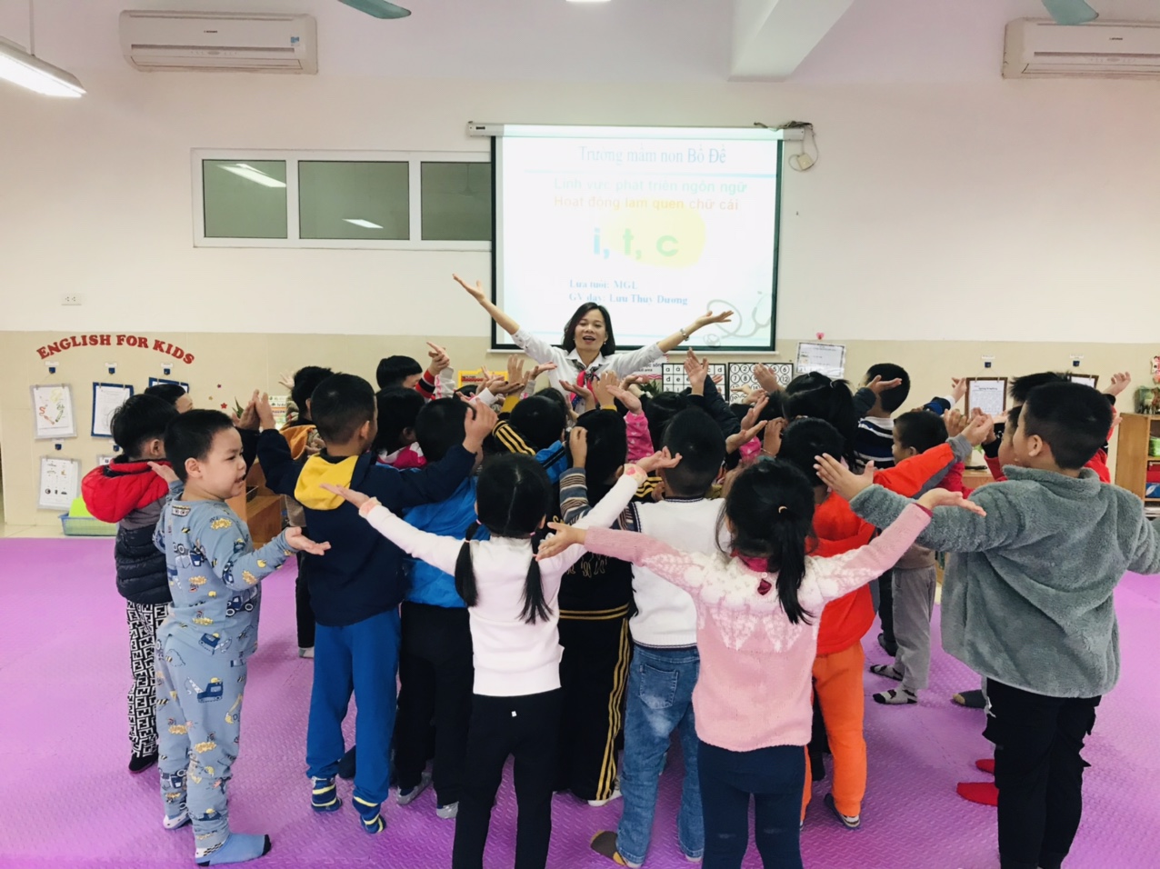 Như chúng ta đã biết hoạt động vui chơi là hoạt động chủ đạo của trẻ Mẫu giáo. Bên cạnh hoạt động vui chơi hoạt động học tập đang được hình thành ở trẻ. Hoạt động học tập của trẻ mẫu giáo thường chi phối bởi hoạt động vui chơi “chơi mà học, học bằng trải nghiệm”. Đặc biệt, môn học “làm quen chữ cái” ở trẻ MGL (5 - 6 tuổi) là môn học giúp trẻ hình thành, phát triển năng lực và thái độ cần thiết cho việc học tiếng việt lớp 1. Ở trường mầm non, trẻ được làm quen với 29 chữ cái của tiếng việt. Từ đó trẻ nhận biết mặt chữ, phát âm đúng chữ cái, nghe phát âm tìm được chữ cái, nhìn vào chữ cái đọc được âm tương ứng. Ngoài ra, trẻ còn được đọc một số câu thơ, ca dao, đồng dao có chứa âm của chữ cái nhằm giúp trẻ phát âm và khả năng ngôn ngữ mạch lạc, nói đúng ngữ âm tiếng việt. Ngày hôm nay các Cô giáo lớp Mẫu giáo lớn A1 cho các con LQCC: i - t - c. Các bạn có muốn biết chữ i - t - c phát âm như nào không? Xin mời các bạn cùng tham gia hoạt động này nhé!