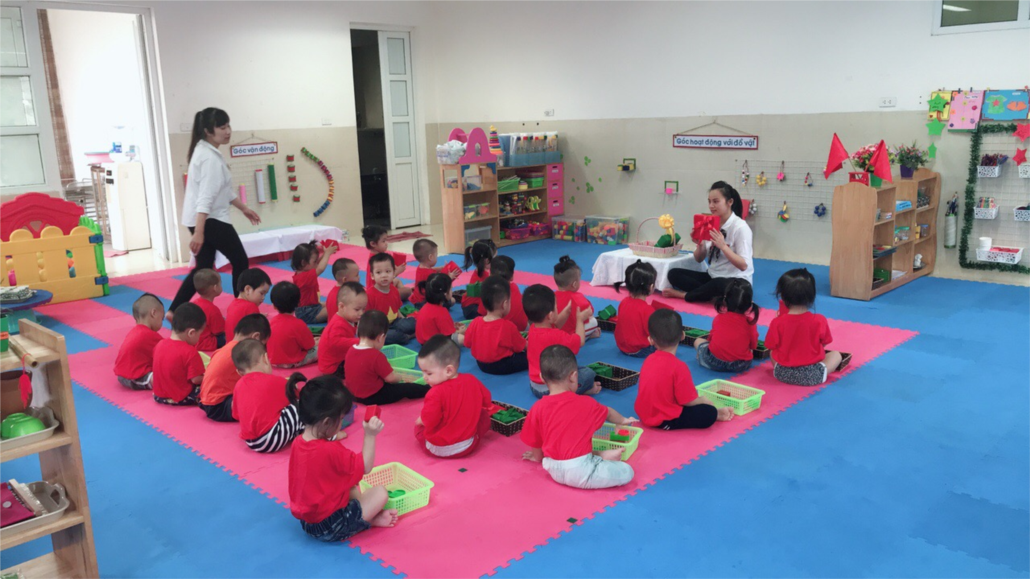 Chính vì vậy, phân biệt màu xanh - màu đỏ là hoạt động nhận biết phân biệt đầu tiên mà các cô giáo lớp Nhà trẻ D2 muốn dạy cho các bé.