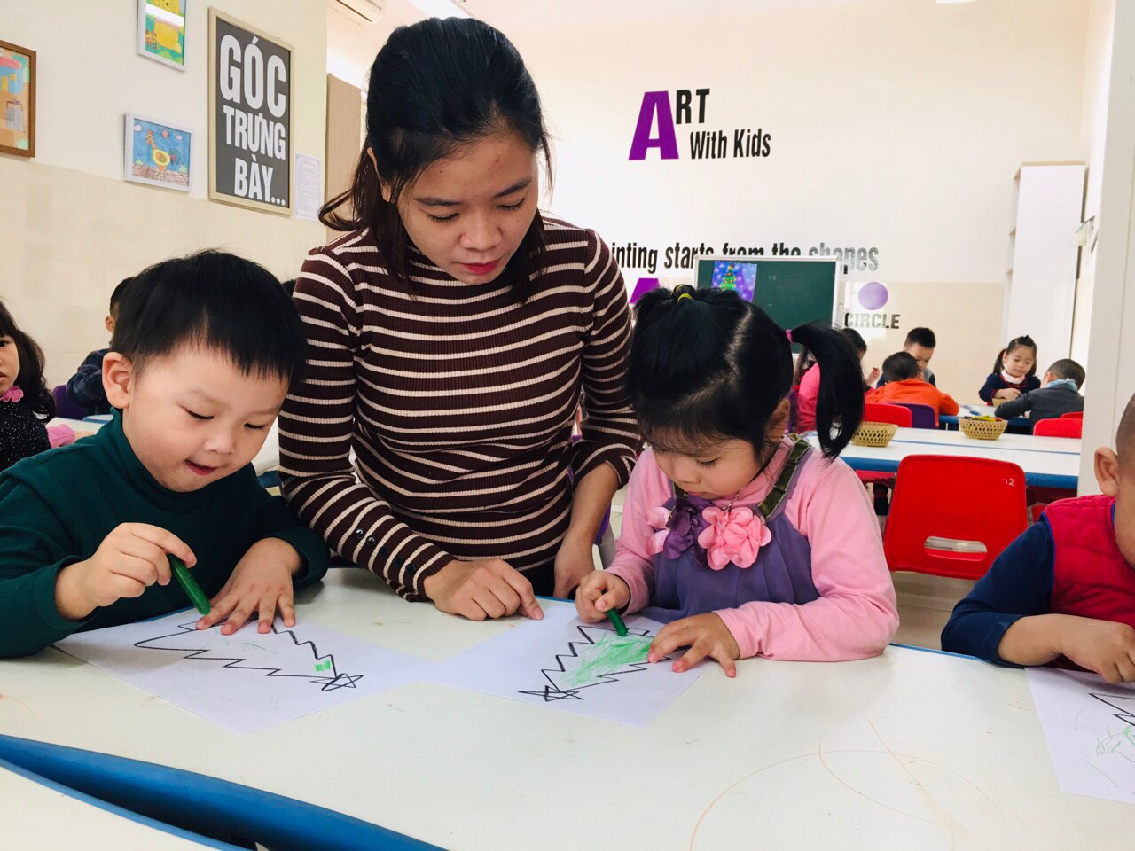 Trẻ mẫu giáo "chơi mà học, học mà chơi". Trẻ rất hiếu động, tò mò, ham muốn học hỏi, tìm hiểu thế giới xung quanh. Trong khi chơi, trẻ thực sự học để lĩnh hội các khái niệm ban đầu hoặc các tri thức tiền khoa học. Biết được tầm quan trọng đó, hôm nay các Cô giáo lớp Mẫu giáo Bé C1 tổ chức cho các con tô màu Cây thông Noel. Từ đó, giúp trẻ hoàn thiện nhân cách, ngôn ngữ, tư duy, phát triển các kỹ năng thực hành, giao tiếp, ứng xử.