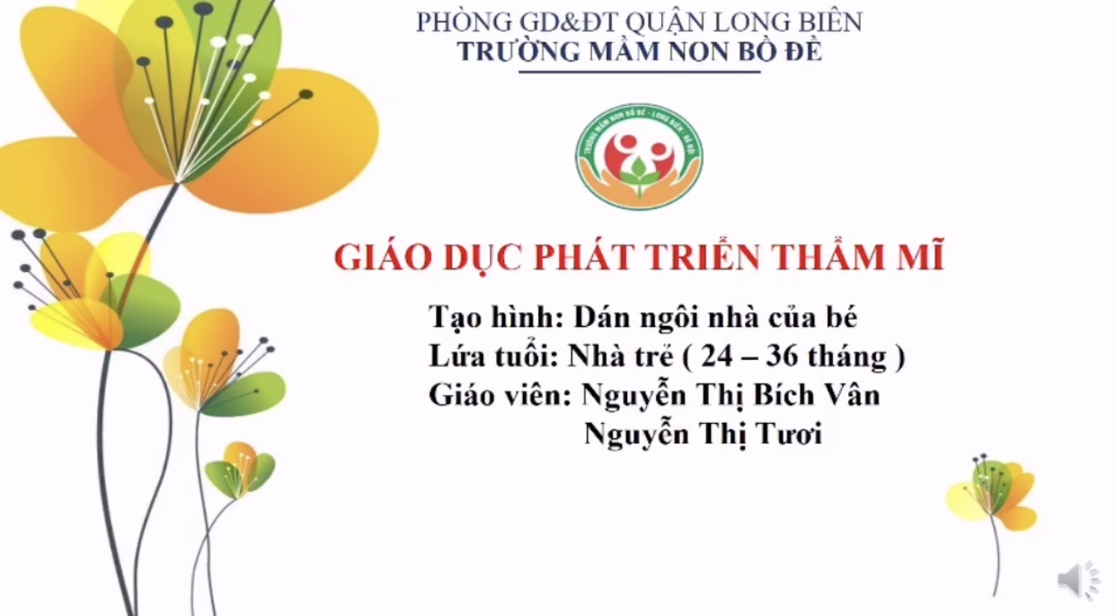 Xin chào tất cả các con! Cô rất vui được gặp lại các con trong bài học ngày hôm nay. Hôm nay cô mang đến cho các con hoạt động tạo hình với đề tài "Dán ngôi nhà của bé". Trước khi vào bài học cô mời các con hát bài "Nhà của tôi". Nào xin mời các con.