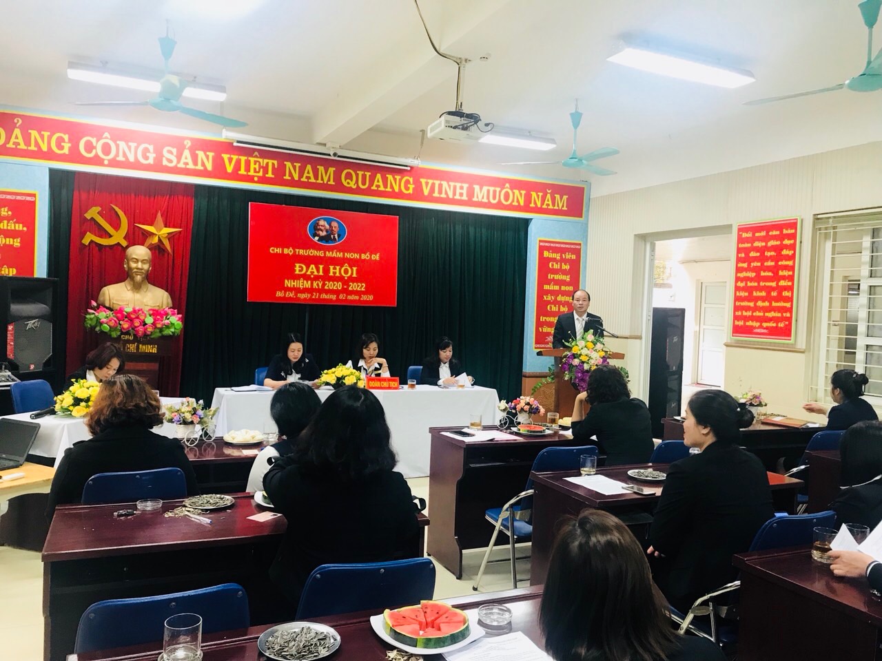 Được sự thống nhất của Đảng ủy phường Bồ Đề, chiều ngày 21/2/2020 tại Phòng hội đồng Chi bộ trường mầm non Bồ Đề tiến hành Đại hội chi bộ nhiệm kỳ 2020 - 2022.